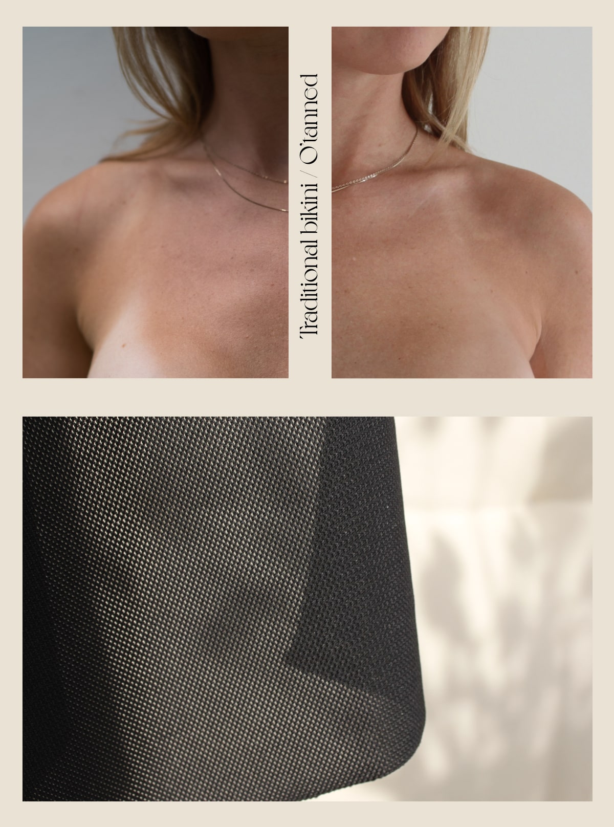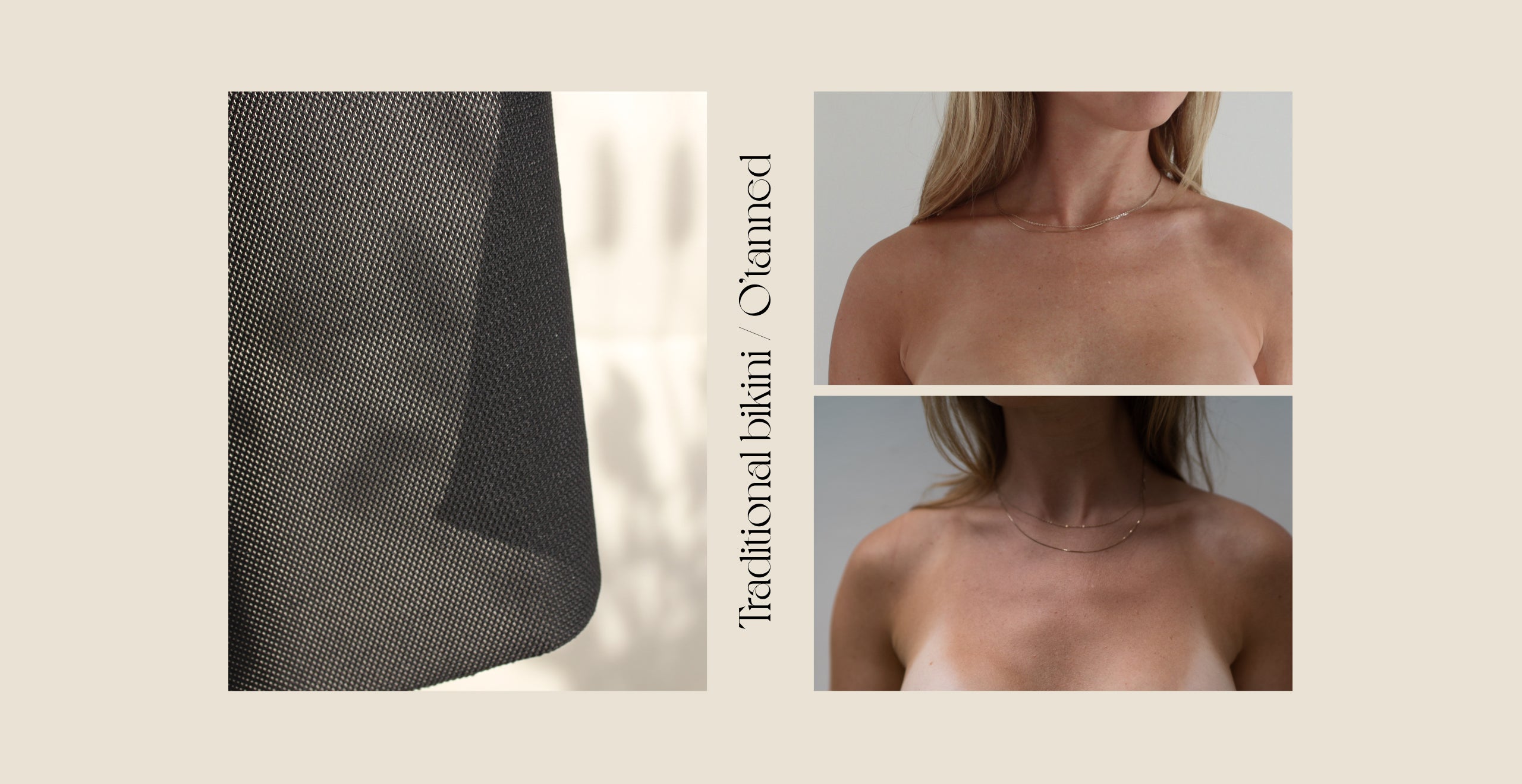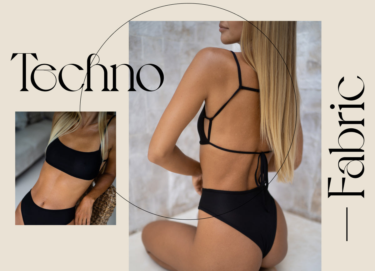 Our swimwear is made in a innovative techno fabric. This unique fabric is different from regular swimwear fabric as it’s knitted with millions of microholes making it light and breathable – which feels great on the skin. We call it ultra quick-drying as it dries 7X times faster than regular swimwear. One of the biggest benefits of this unique knitting technique is how it allows tanning rays to pass through the fabric making it tan-through. You can finally say goodbye to harsh tan lines and get a light sunkissed tan under your swimwear.